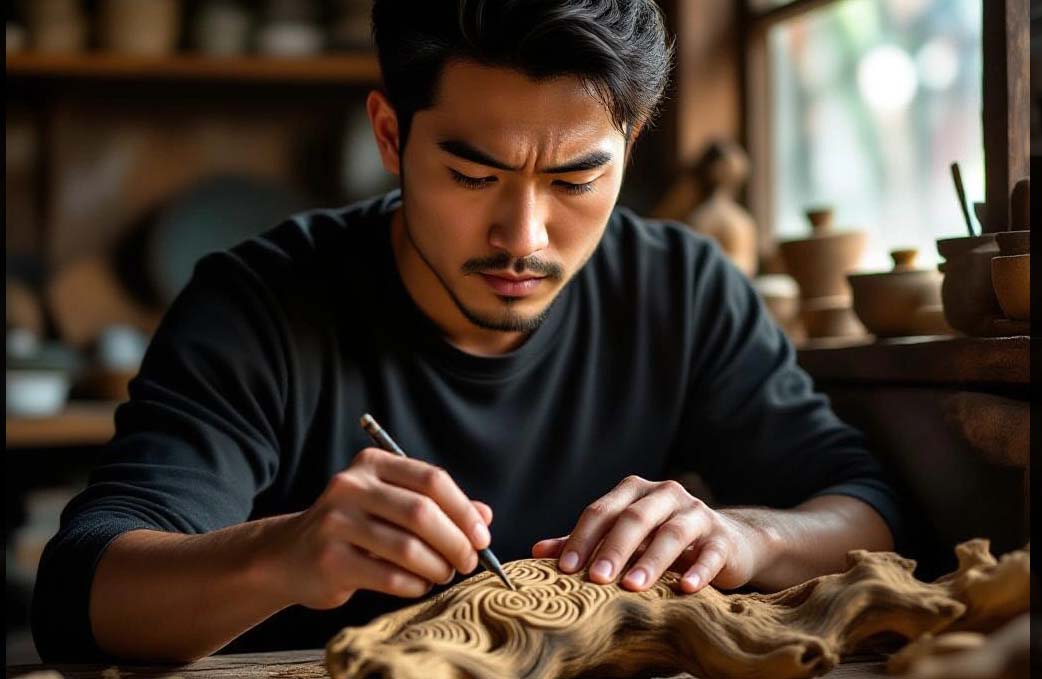 The sculptor’s hands are gentle, following the pulse of the wood.