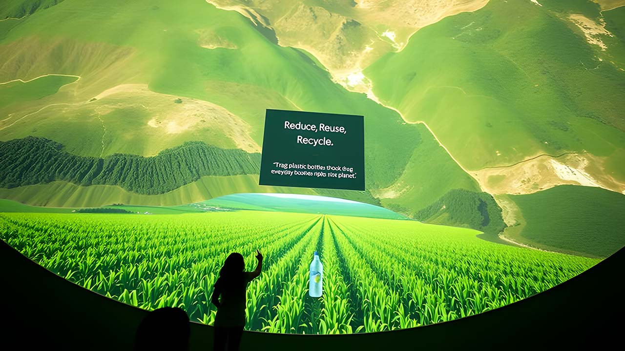 - Day 2: Interactive Dome Tom set up a digital dome, projecting satellite images of the valley. People walked beneath the dome, and the images showed the decline in green cover over the past decade. A message flashed on the screen: “Reduce, Reuse, Recycle.” When children touched the dome, a three-dimensional cornfield slowly grew, and they were guided to drag virtual plastic bottles into a recycling bin. The game was simple, but it left a lasting impression.
