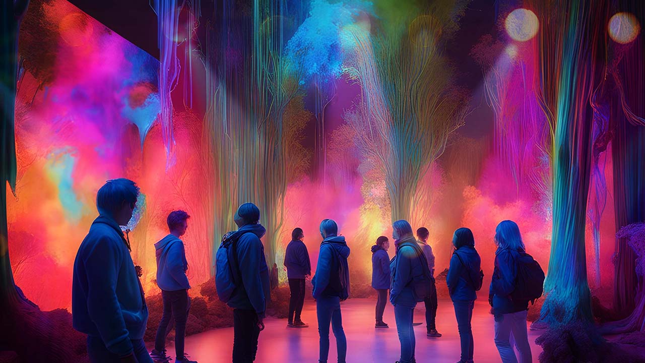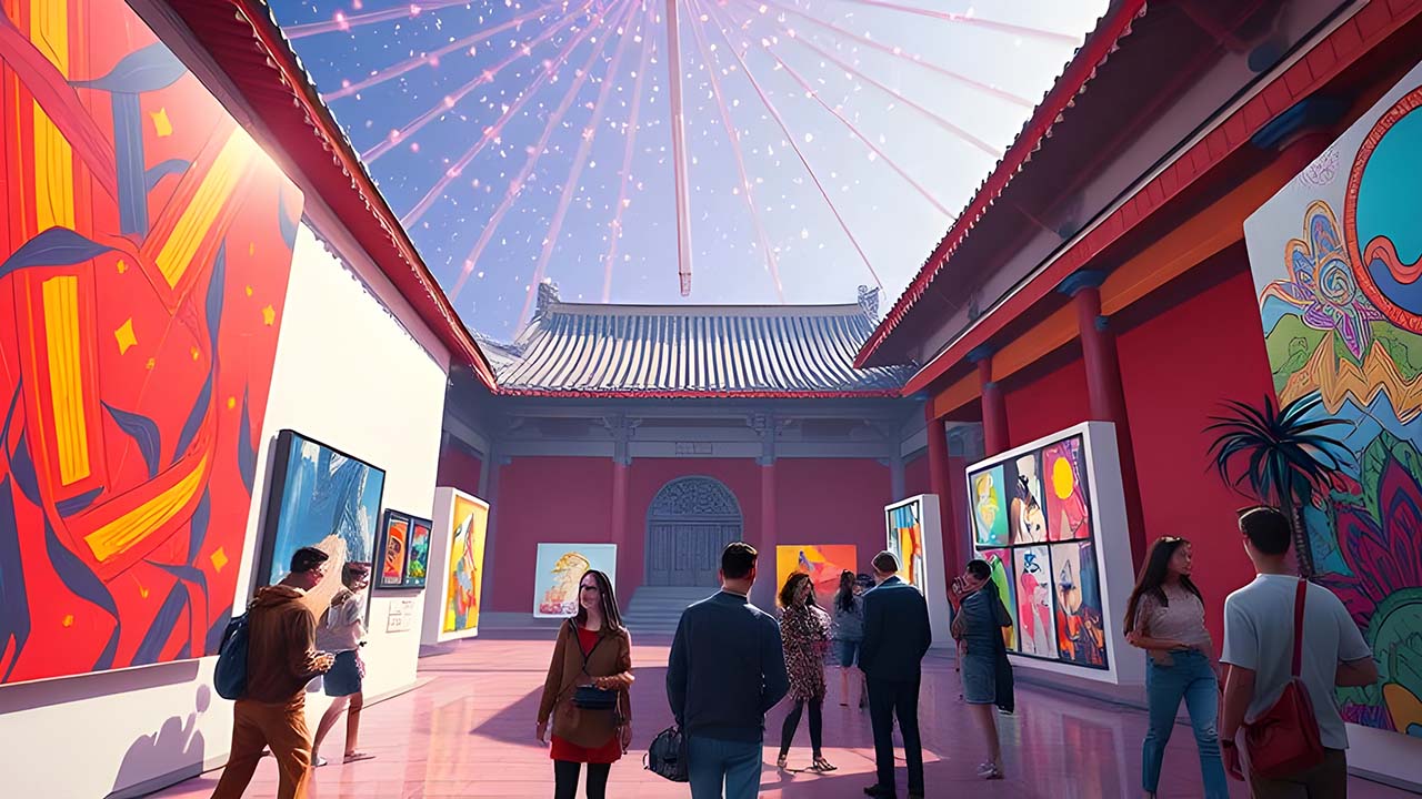 Then, she realized the greatest bridge wasn’t a road or a network but a shift in mindset. She orchestrated a grand art exhibition, where a master of movement and light, imbued with a radiant energy, demonstrated the power of connection, of shared breath, of unified purpose. This exhibiiton transcended language and tradition, resonating with every heart. (Image 3).